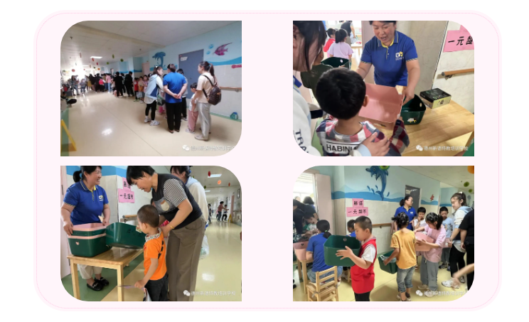 一切就緒,孩子們有序排隊(duì),老師們分發(fā)購(gòu)物筐,開(kāi)始購(gòu)物啦!